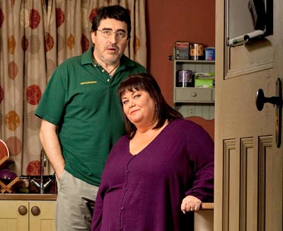 Although the idea for Roger and Val Have Just Got In was Dawn’s, she decided against writing the series herself, instead inviting twin sisters Emma and Beth Kilcoyne to do the honours. “I have a lot of respect for their work,” says Dawn. “They’re better writers than me and I felt this had a kind of drama tone with which I’m not familiar. We got together a few years ago, had lots of meetings and it grew organically from there.”