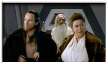The other sketches which punctuated the show featured French & Saunders' customary surreal living room chat and Dawn as a stroppy 'Diana Ross' aeroplane passenger to Jennifer's airport security officer. But the star of this show was always the movie send-up which with French & Saunders' acute observations, fantastic hair and make-up, surprisingly good special effects (did you check those lightsabres?) and a generous dollop of silliness made 'The Phantom Millennium' a treasure. Guest appearances were made by 'Are You Being Served''s John Inman as the wicked Senator Palpatation and Jeanette Krankie as Anadin Skywalker. The Schoolgirls also returned with a sketch which saw Emma (played by Saunders) leaving school with no plans to return... All in all highly entertaining. frenchandsaunders.com hopes to see today's homage in a new edition of 'French and Saunders Go to the Movies' soon.